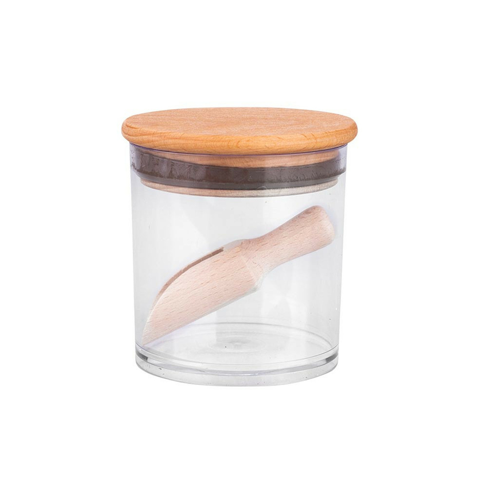 Plastová dóza s dreveným viečkom a drevenou lyžičkou vynikne najmä v kuchyni na poličke naplnená mletou kávou, farebným korením alebo obľúbenými bylinkami. Vďaka číremu vzhľadu budete mať vždy prehľad o obsahu a množstve. Drevené viečko dobre tesní, preto si pochutiny udržia svoju arómu.